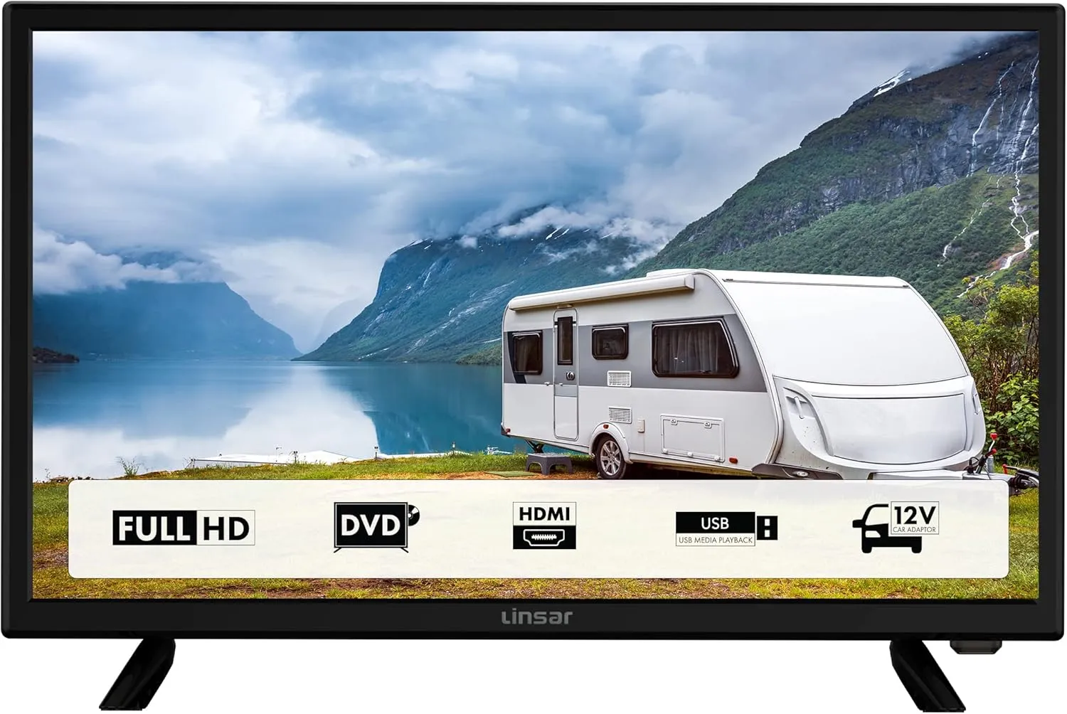 Télévision Linsar 24 pouces avec DVD intégré, adaptée aux caravanes, 12V, Dolby Audio, Tuner DVB, HDMI, USB